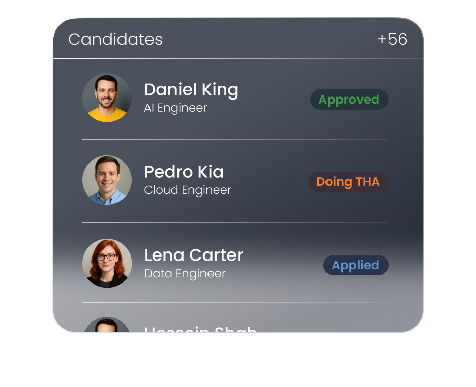 Recruiters can introduce candidates and follow their journey through a shared dashboard.